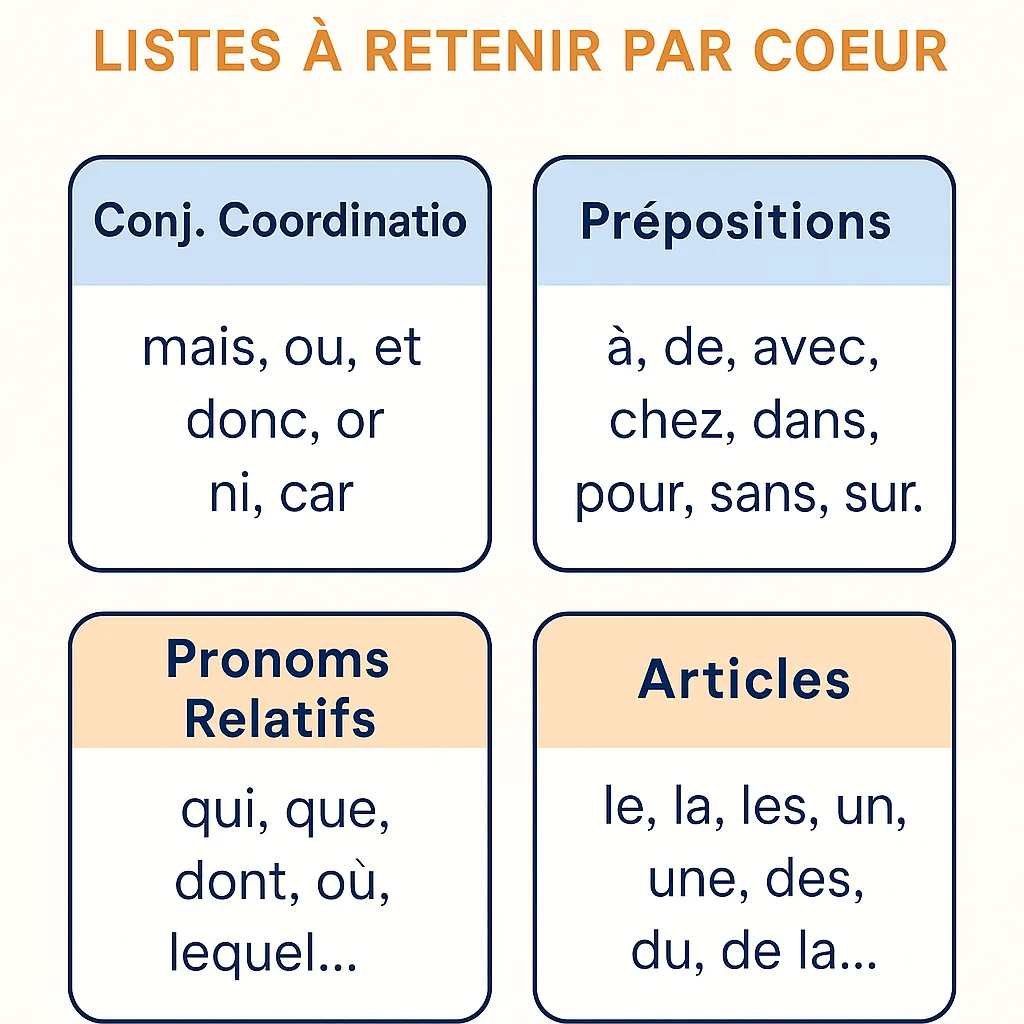 La Base de La Grammaire Listes à Retenir Par Coeur.